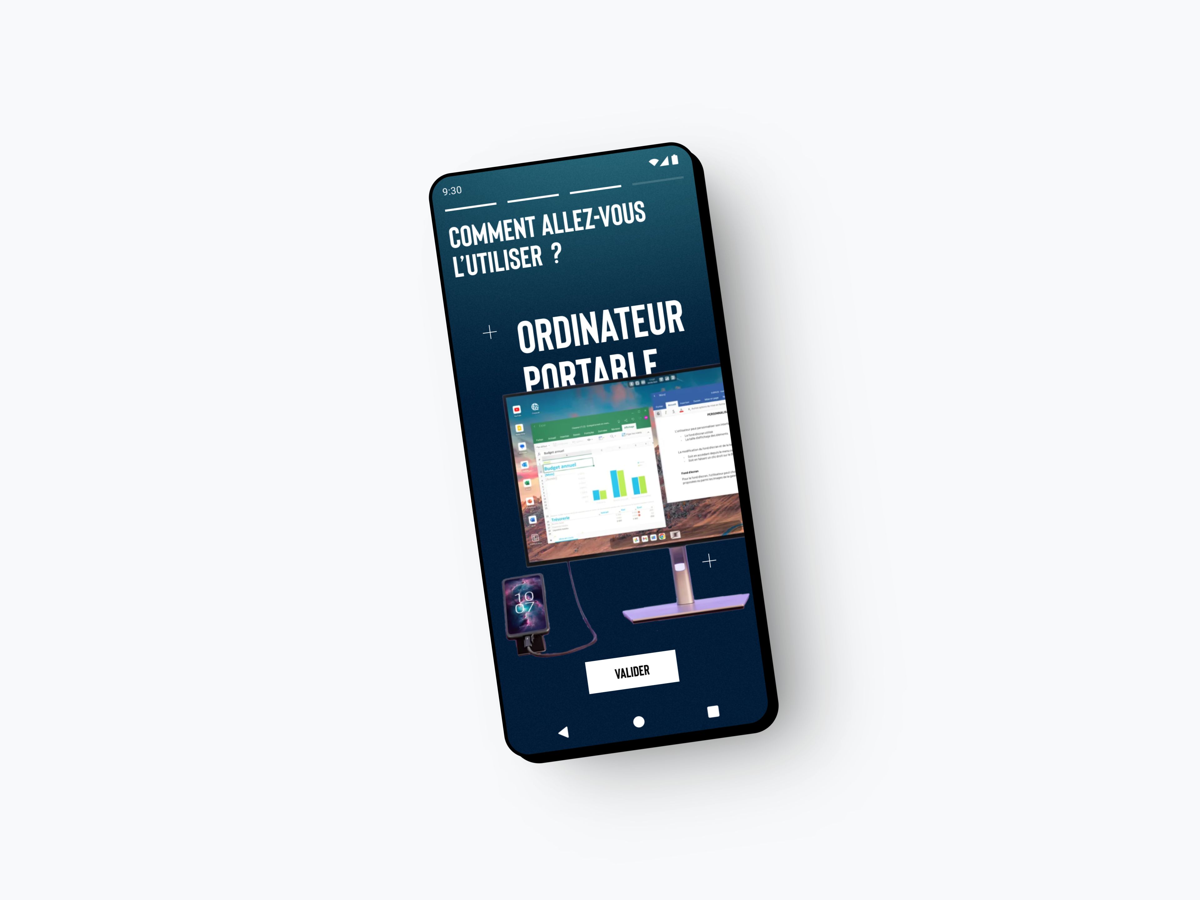 Après deux semaines de Design Sprint et une collaboration étroite avec l’équipe marketing pour comprendre les contraintes liées à la collecte de données, j’ai conçu un prototype illustrant la nouvelle direction du wizard. Ce prototype a servi de guide clair pour les développeurs dans la phase de réalisation.