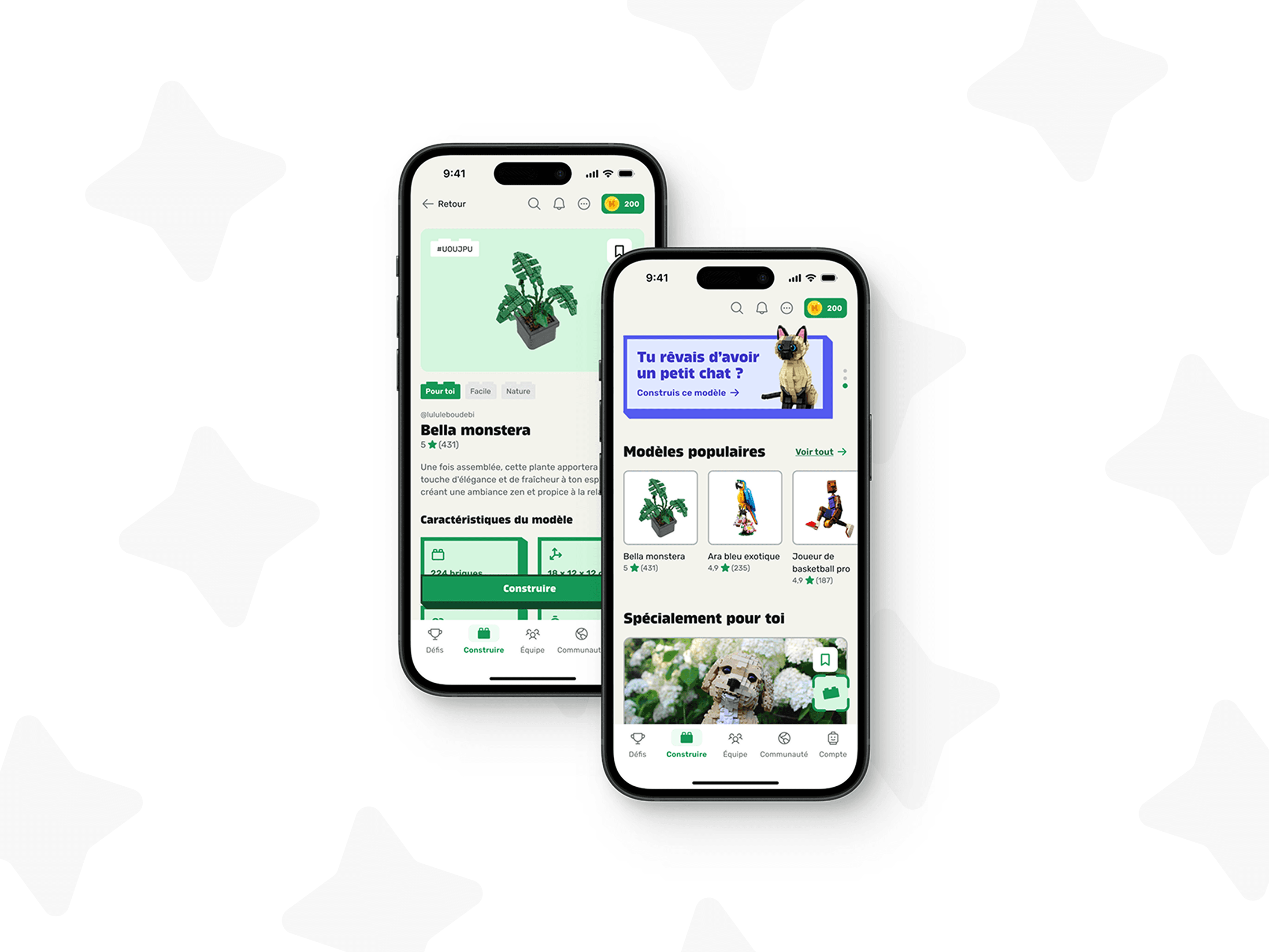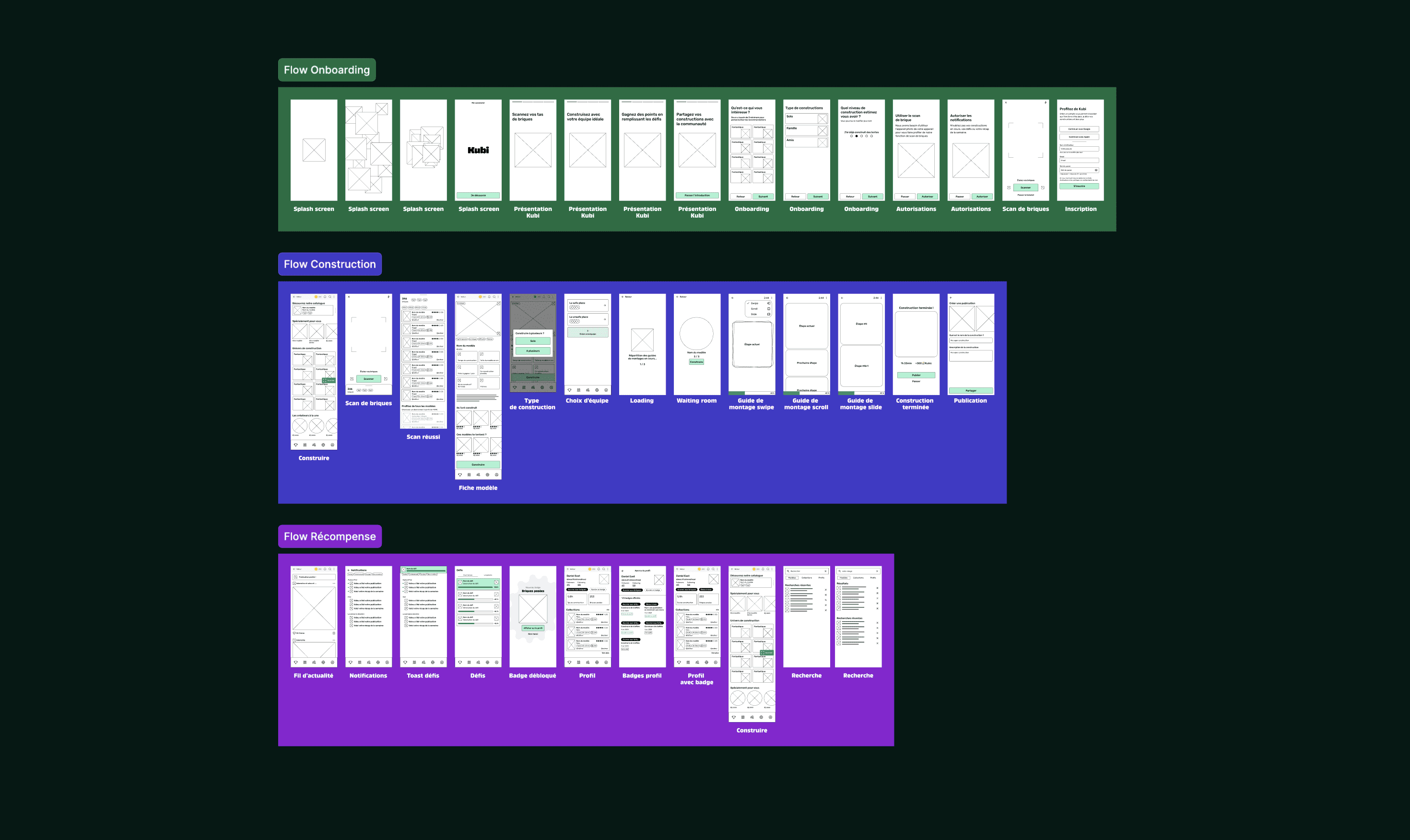 Pour le projet de fin d'année de mon Mastère 2, nous devions concevoir une application accompagnée de son design system. Ainsi est née Kubi, une application dédiée à la réutilisation des LEGO oubliés au fond du grenier. Grâce à un système de scan des briques, Kubi génère des modèles uniques et personnalisés, adaptés à des constructions en solo ou en groupe.